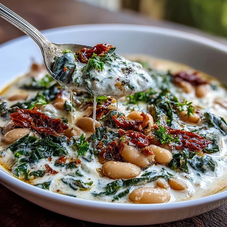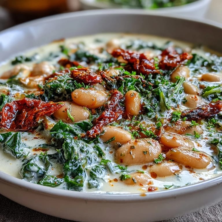 Save There's something about the first chilly evening of fall that made me pull together this Tuscan soup, remembering a small trattoria tucked into a Roman alley where a bowl of creamy white beans changed how I thought about comfort food. The cashew cream came later, a discovery born from necessity when someone at my table couldn't eat dairy but refused to skip the richness. What started as a workaround became the soul of the dish, silky and luxurious without apology.