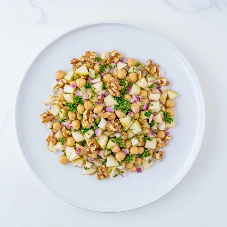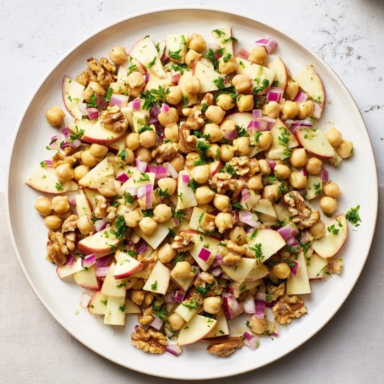 Save I discovered this salad on a crisp October afternoon when my farmers market bag was overflowing with apples I couldn't resist and a can of chickpeas I'd been meaning to use. Standing in my kitchen with autumn light streaming through the window, I started layering what felt right—the sweetness of apples against something earthy, the crunch of walnuts, and a dressing that balanced it all with a warm mustard bite. What began as improvisation became something I make every fall now, a salad that tastes like the season itself.