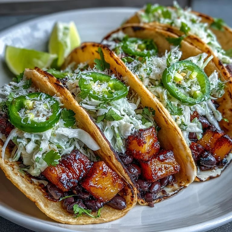 Save There's a particular kind of joy in biting into a taco where cold, creamy slaw meets warm, caramelized fruit and beans, where cilantro hits your palate, and suddenly you're transported somewhere that doesn't require a passport. These tacos do that for me every single time.