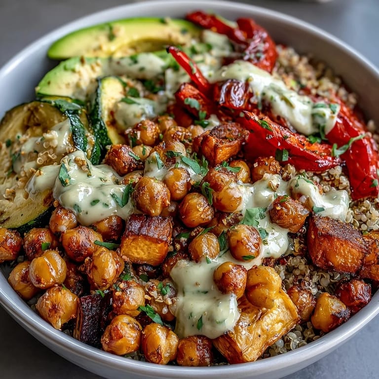 Save Last Tuesday, I stood in my kitchen staring at a half-empty pantry and realized I had everything except the energy to cook something complicated. That's when this bowl came together—not from a plan, but from grabbing what was there and letting the oven do the heavy lifting. The smell of roasting chickpeas with smoked paprika filled the apartment so completely that my roommate emerged from her office asking what smelled like a restaurant. It turned out to be exactly what I needed: something hearty, something that actually tasted like I'd made an effort, and something that kept giving me lunch for days.