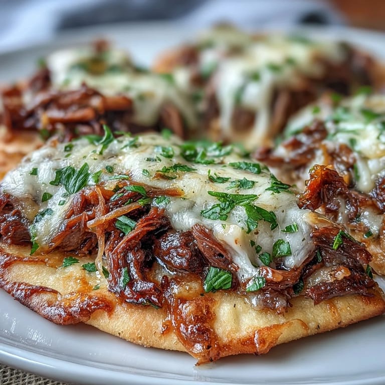 Save Experience the ultimate comfort food fusion with this Slow Cooker Beef & Garlic Naan Melt. This dish takes the soul-warming essence of a traditional Sunday roast and combines it with the pillowy, aromatic goodness of garlic naan. The beef is slow-cooked until it effortlessly shreds, then piled onto warm bread and topped with a blanket of melted cheese, creating a sandwich that is part French dip and part gourmet melt.