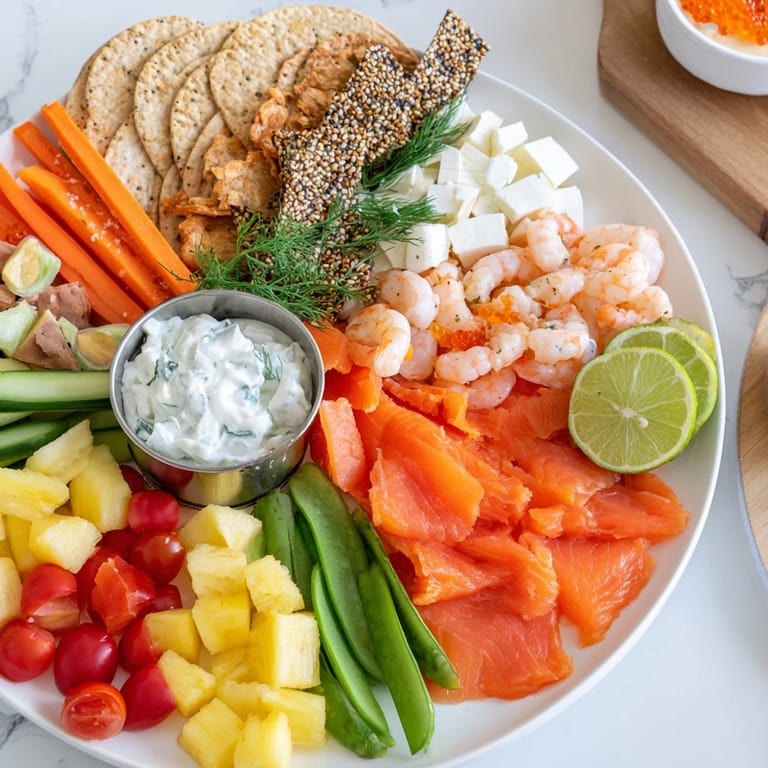 Save A vibrant, ocean-inspired snack board featuring fresh fruits, crisp vegetables, and coastal flavors, perfect for sharing after a day at the beach.
