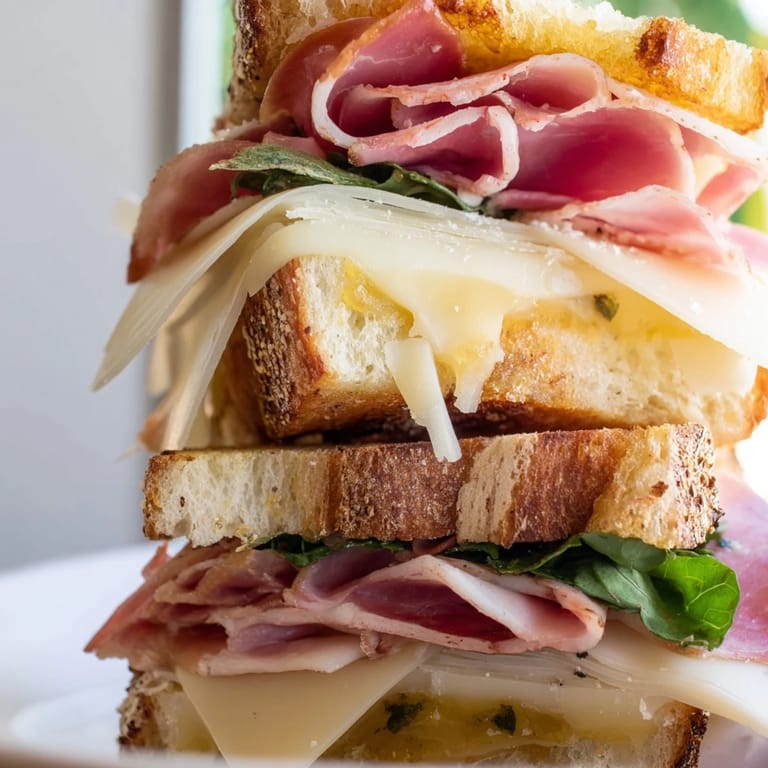 This platter pairs beautifully with a chilled bottle of Champagne, a light Pinot Noir, or a sparkling elderflower drink, adding refreshing contrast to the rich sandwich layers. Garnish the serving platter with fresh herbs and extra cornichons for a festive touch. Perfect for brunches, garden parties, or elegant casual occasions.