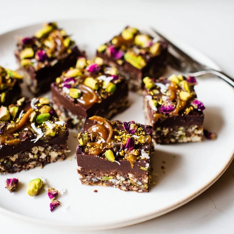 I created this dessert after tasting luxurious chocolate confections in Dubai, blending local textures like pistachios and aromatic spices into a unique treat everyone loved.