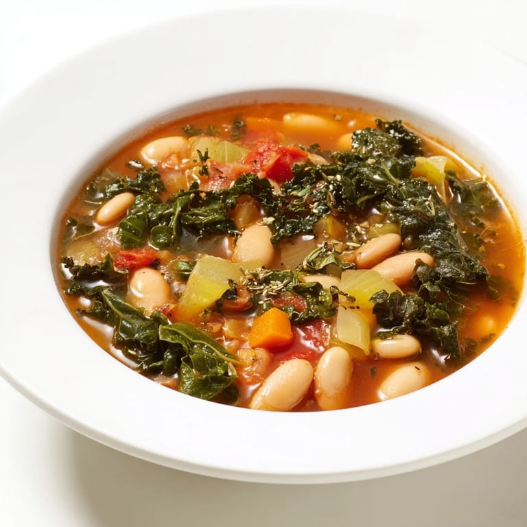 Save A hearty, rustic stew featuring tender beans, vibrant kale, and aromatic Italian flavors—perfect for a cozy, nutritious meal.
