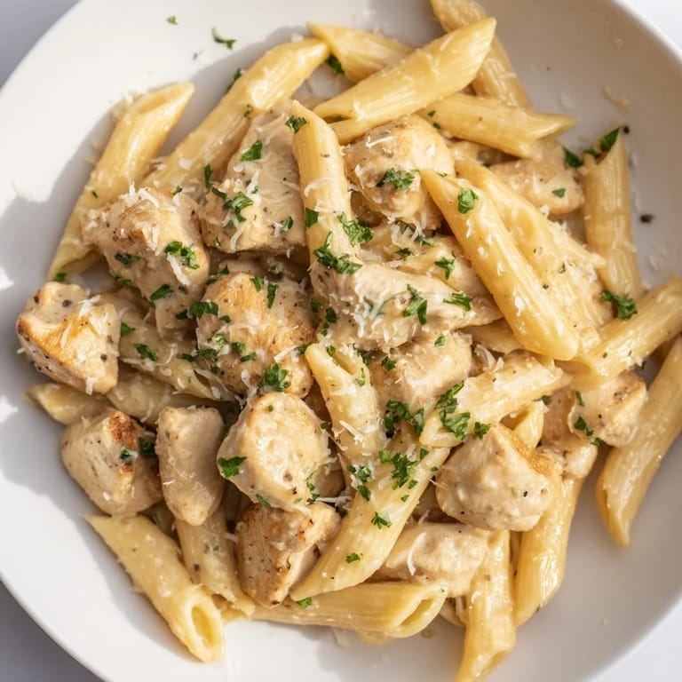I made this for my daughter's friend group once, four hungry teenagers who barely acknowledged food usually. Something shifted when they tasted it—the way the pasta absorbed all that savory broth while staying creamy, how the chicken pieces disappeared first. One of them asked for the recipe, which felt like the highest compliment a home cook can get.