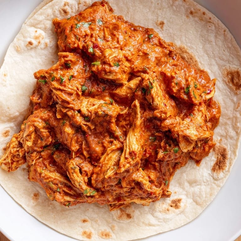 Save A fusion of Indian and Mexican favorites: tender slow-cooked chicken tikka masala wrapped in soft taco shells, finished with a sticky, flavorful glaze and fresh toppings.