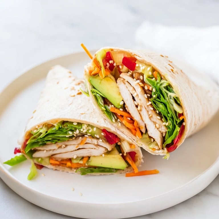 Save A vibrant, flavorful wrap featuring tender teriyaki-marinated chicken, crisp vegetables, and a hint of sweetness, all rolled into a soft tortilla perfect for lunch or a light dinner.