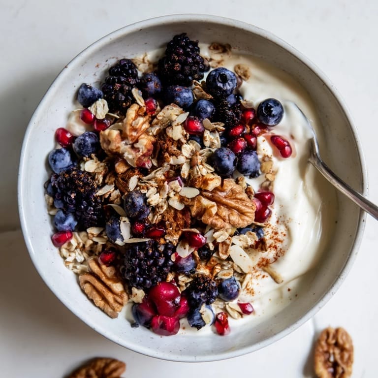 Save This became my go-to when friends drop by unexpectedly. I pull out the jar of pre-made crunch, arrange the berries, and suddenly breakfast looks like something from a cafe. There is something about the combination of cold yogurt and warm spices that makes people feel at home.
